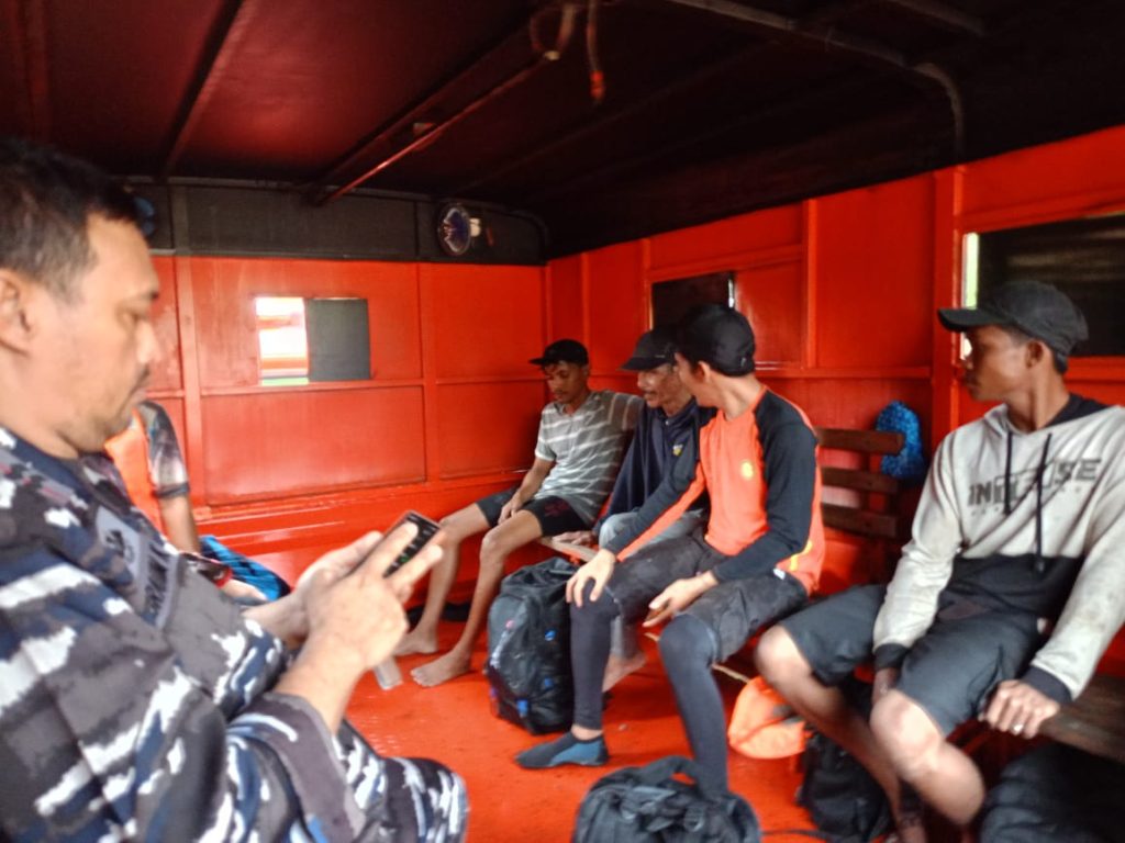 Enam ABK KM Cahaya Abadi saat di evakuasi. BANGKA TENGAH, Berliannews.id – Enam orang Anak Buah Kapal (ABK) KM. Cahaya
