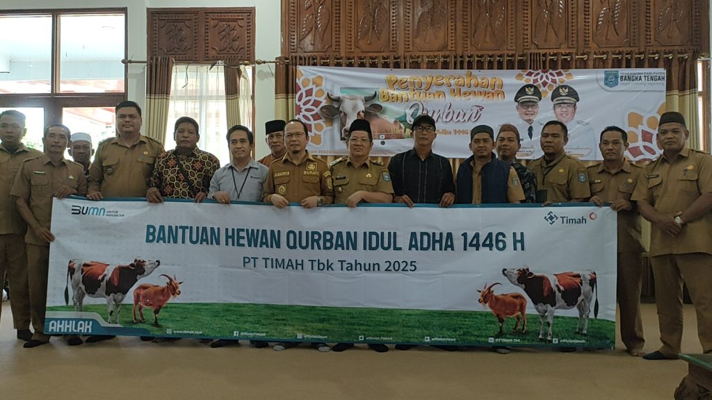 BANGKA TENGAH, Berliannews.id – Pemerintah Kabupaten Bangka Tengah (Bateng) menerima bantuan hewan kurban berupa 63 ekor sapi dari mitra