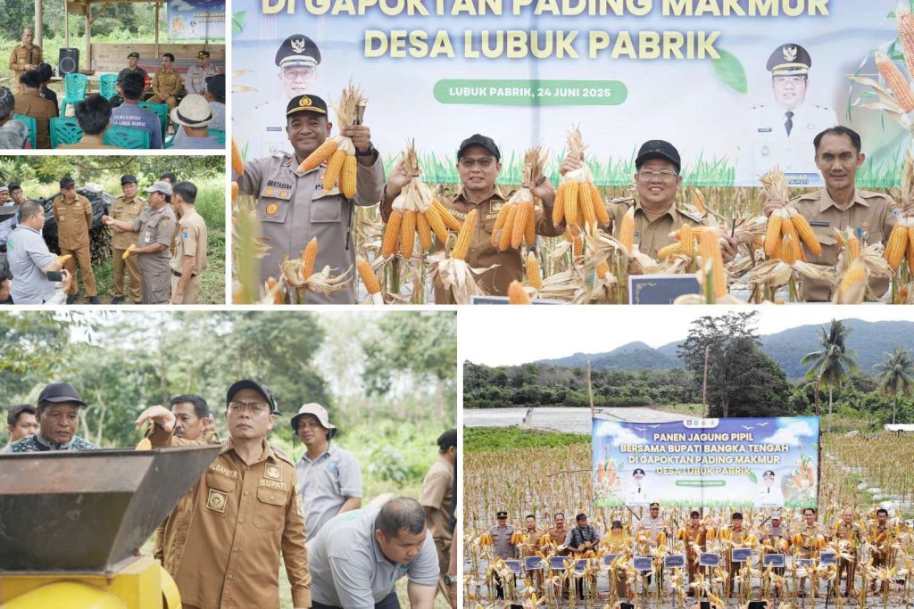 Panen Raya Jagung Pipil di Lahan Gapoktan Pading Makmur. Foto : Diskominfosta Bangka Tengah. BANGKA TENGAH, Berliannews.id – Bupati Bangka