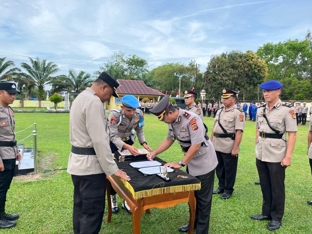 Upacara Serah Terima Jabatan di Halaman Mapolres Bangka Tengah. BANGKA TENGAH, Berliannews.id -Polres Bangka Tengah melaksanakan upacara serah terima jabatan