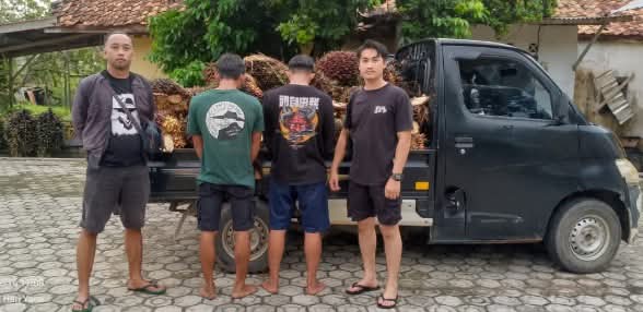 KOBA – Tim Silent Night Unit Reskrim Polsek Koba berhasil menangkap dua orang pelaku pencurian Tandan Buah Sawit (TBS) yang