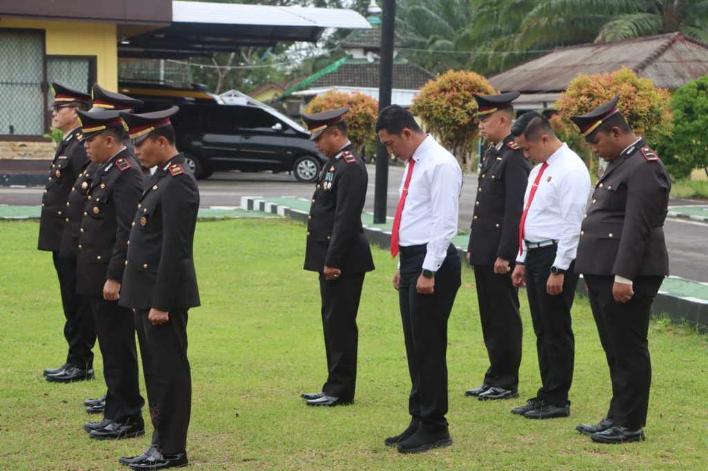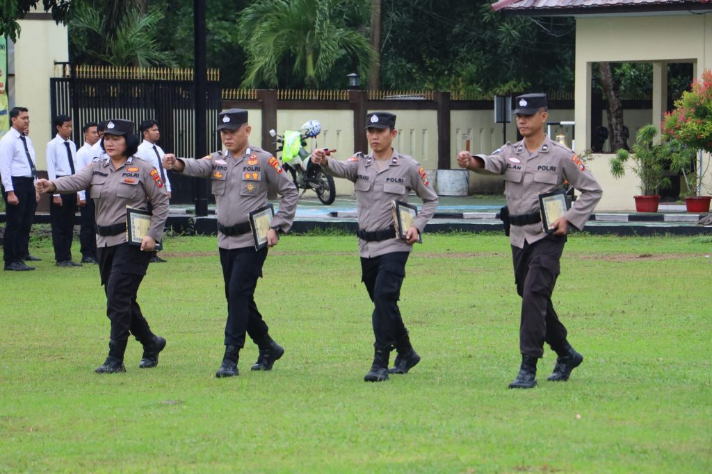 KOBA – Meski dalam kondisi hujan, Polres Bangka Tengah (Bateng) tetap melaksanakan upacara pemberian penghargaan (reward) dan Pemberhentian Tidak Dengan