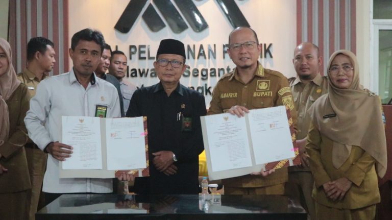 BANGKA TENGAH, Berliannews.id – Pemerintah Kabupaten Bangka Tengah (Pemkab Bateng) bersama Pengadilan Agama Sungailiat Kelas 1B melakukan Penandatanganan Nota Kesepakatan tentang Sinergitas Penyelenggaraan Layanan Administrasi Publik Secara Terpadu di Mal Pelayanan Publik.