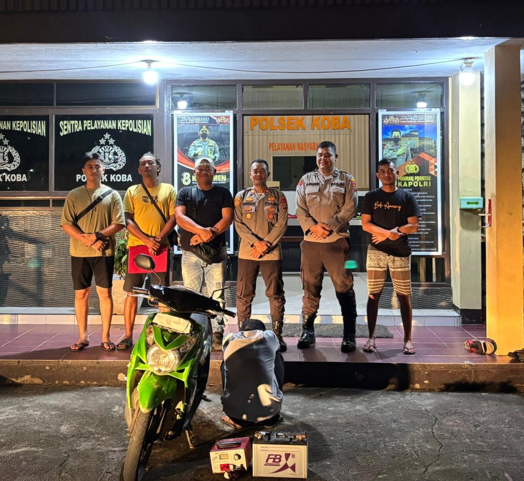 Pelaku Pencurian Acu dan Carger Kapal Nelayan Desa Kurau Saat Di Amankan Di Polsek Koba BANGKA TENGAH, Berliannews.id – Unit