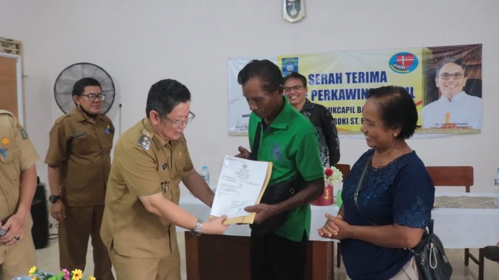 Jalankan Inovasi Amoy Noni Si Perawan, Wabup Bateng Serahkan Akta Perkawinan dan KK