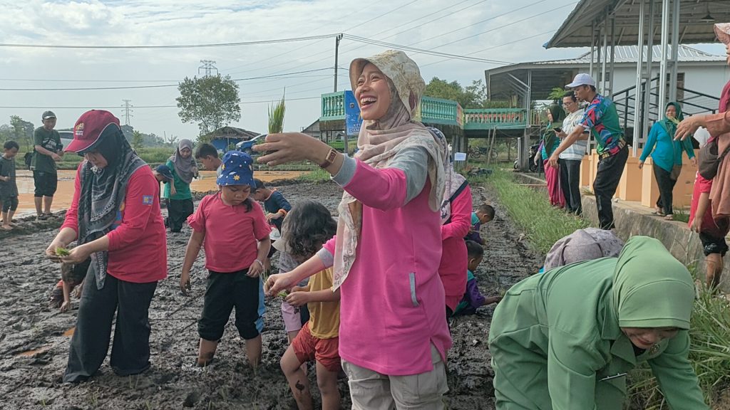 Bunda PAUD Bangka tengah, Eva Algafry Melakukan Penanaman Padi Bersama. BANGKA TENGAH, Berliannews.id – Bunda Pendidikan Anak Usia Dini (PAUD)