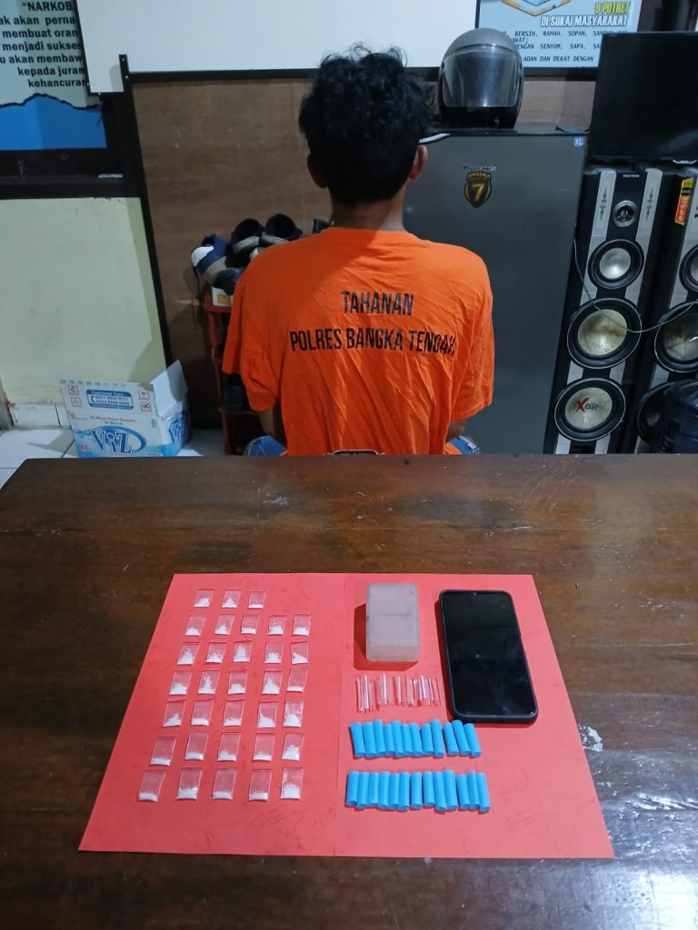 Tersangka Dan Barang Bukti Di Amankan di Mapolres Bangka Tengah. BANGKA TENGAH , Berliannewa.id – Satuan Reserse Narkoba Polres Bangka