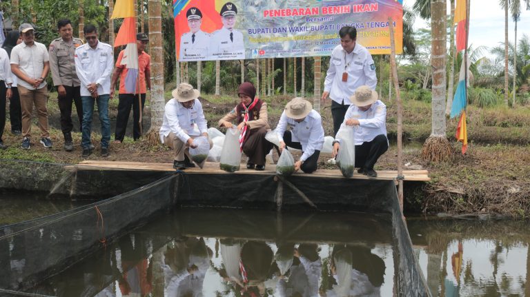 Penebaran 7 Ribu Benih Ikan Oleh Bupati dan Wakil Bupati Bangka Tengah Beserta Ketua TP PKK Bangka Tengah.