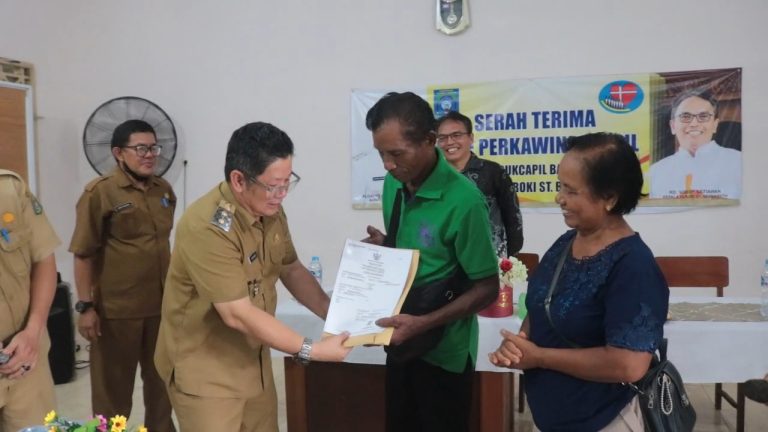Melalui program ini, Wakil Bupati Bangka Tengah, Efrianda pada Selasa (27/05/2025) secara langsung menyerahkan Akta Perkawinan kepada Lima pasangan non Muslim dan Kartu Keluarga kepada Sembilan keluarga.