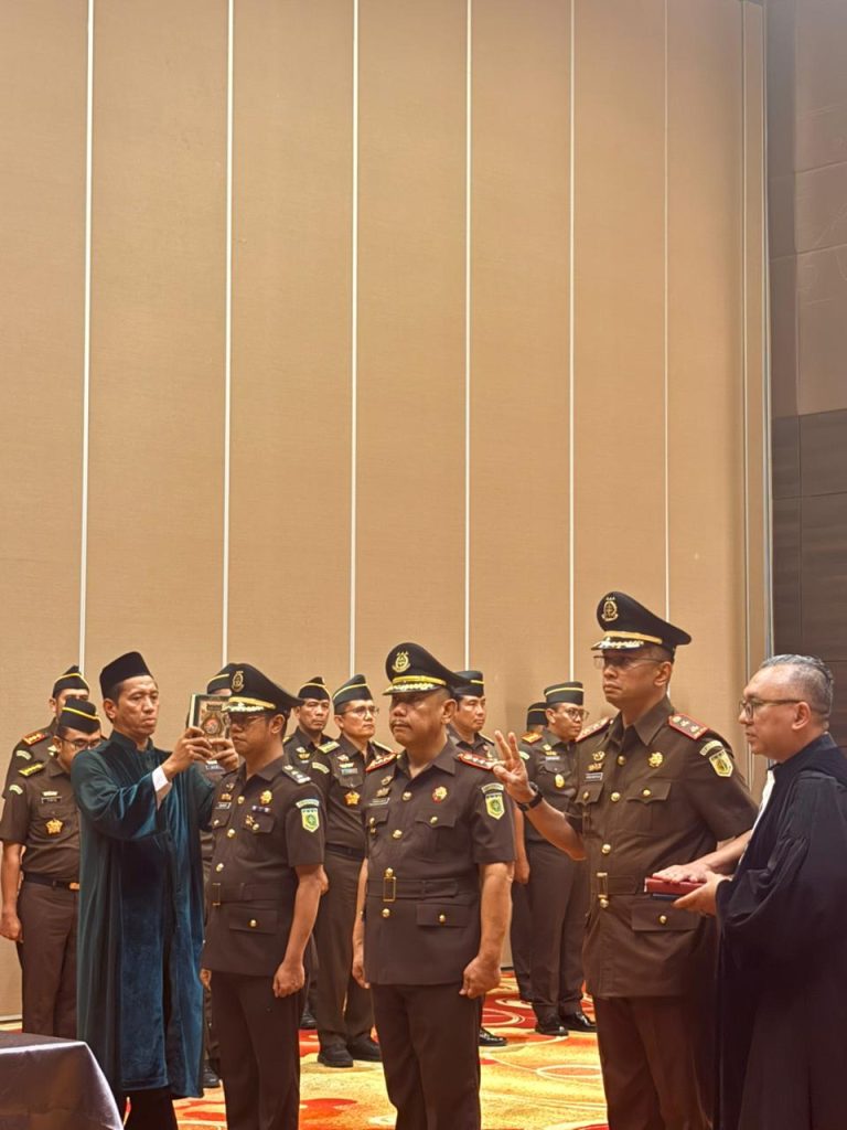 Kegiatan pelantikan tersebut berdasarkan Surat Keputusan Jaksa Agung Republik Indonesia Nomor: KEP-IV-347/C/04/2026 tanggal 13 April 2026 tentang Pengangkatan Jabatan Struktural Pegawai Negeri Sipil Kejaksaan Republik Indonesia yang mana kegiatan diawali dengan pengambilan sumpah jabatan dan dilanjutkan dengan penandatanganan Berita Acara Pelantikan oleh Pejabat Eselon III yang baru dilantik dengan disaksikan oleh Asisten Tindak Pidana Umum yaitu Ginanjar Cahya Permana S.H.,M.H dan Asisten Perdata dan Tata Usaha Negara Dony Kayamudin Ritonga, S.H.,M.Hum.