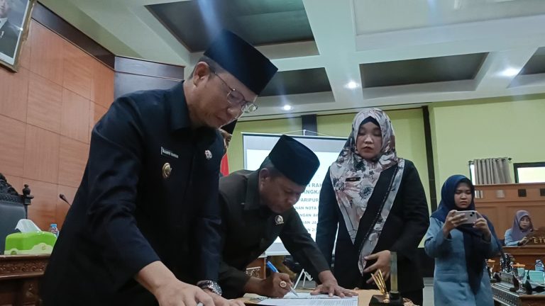 “Alhamdulillah, hari ini nota kesepakatan dengan DPRD sesuai permendagri bahwa semua rancangan daripada Bupati dan Wakil Bupati terpilih sudah harus disepakati bersama dengan DPRD dan sudah kita laksanakan,” ujar Bupati Algafry Rahman.