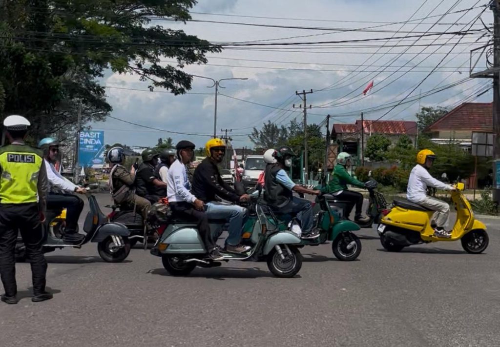 Bupati Algafry (Scooter Kuning) Bersama Ratusan Pecinta Vespa Dari Berbagai Daerah Konvoi Keliling Kota Koba. BANGKA TENGAH, Berliannews.id -Ratusan pecinta