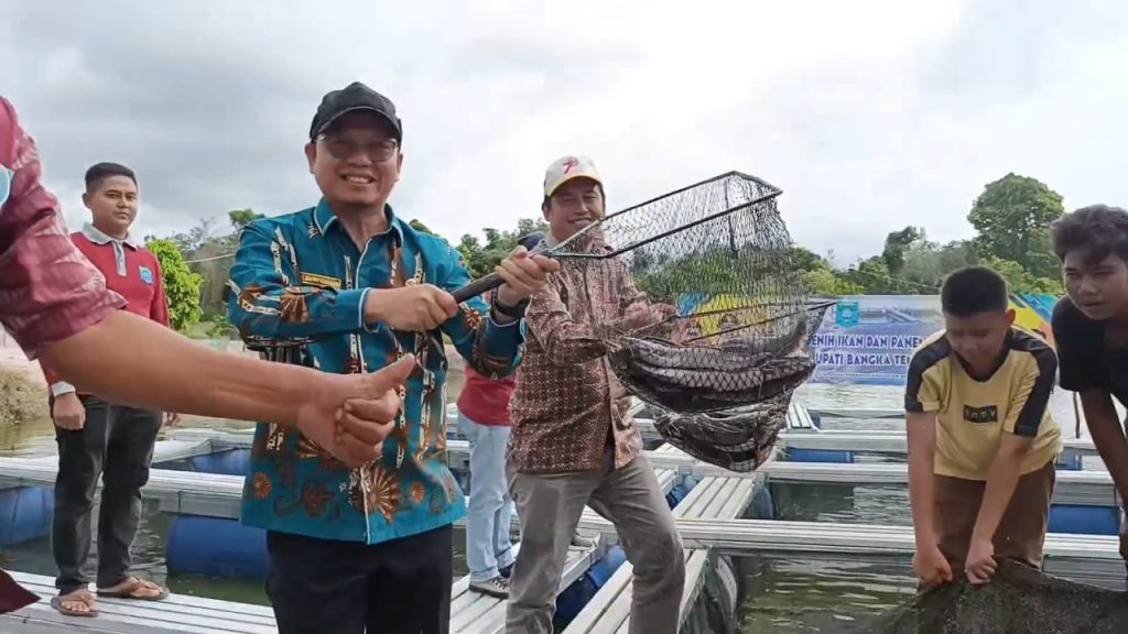 Bupati Bangka Tengah, Algafry Rahman Saat Memanen Ikan. BANGKA TENGAH, Berliannews.id – Bangka Tengah (Bateng) dikenal sebagai Kabupaten penghasil ikan.
