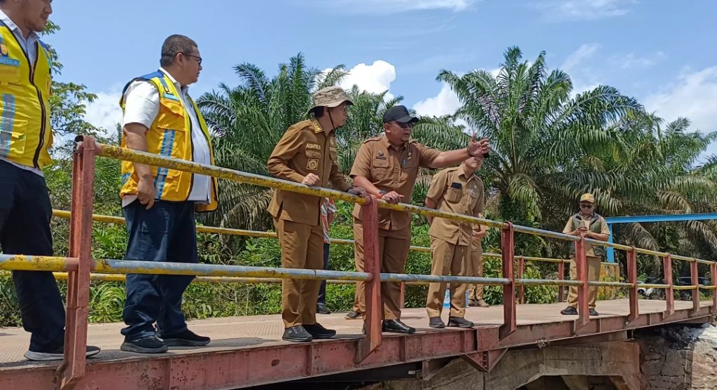 Bupati Bangka Tengah, Algafry Rahman Saat Meninjau Jembatan Lempuyang. Foto : Rachmat Kurniawan/berliannews.id BANGKA TENGAH, Berliannews.id – Sempat roboh akibat