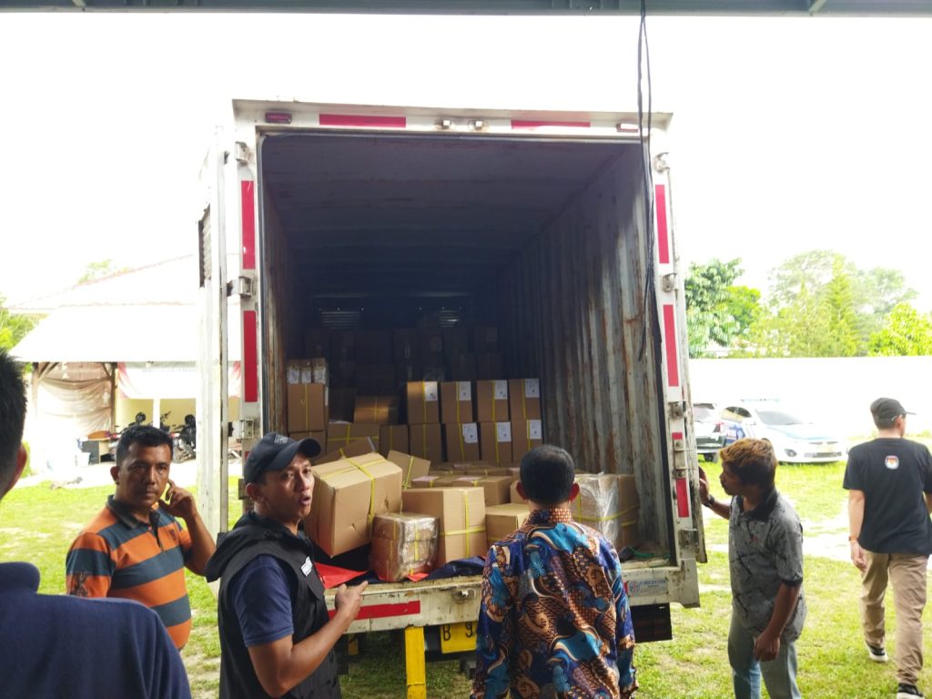 KOBA – Komisi Pemilihan Umum (KPU) Kabupaten Bangka Tengah (Bateng) telah menerima pengiriman logistik penting berupa surat suara, di gudang