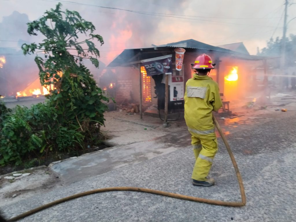 KOBA – Telah terjadi kebakaran dua unit rumah dan 1 ruko di Jl.Melati, Kelurahan Simpang Perlang, RT 04 Kecamatan Koba,