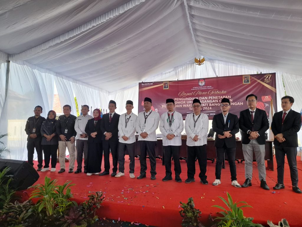 KOBA – KPU Bangka Tengah (Bateng) mengadakan pleno terbuka pengundian dan penetapan nomor urut pasangan calon Bupati dan Wakil Bupati