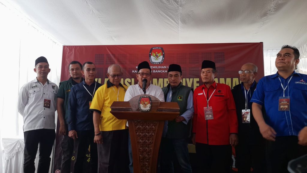 KOBA – Pasangan Calon Bupati dan Wakil Bupati Bangka Tengah (Bateng), Adet-Erlansyah Roskar Aprinata mendapatkan nomor urut 2 di Pilkada
