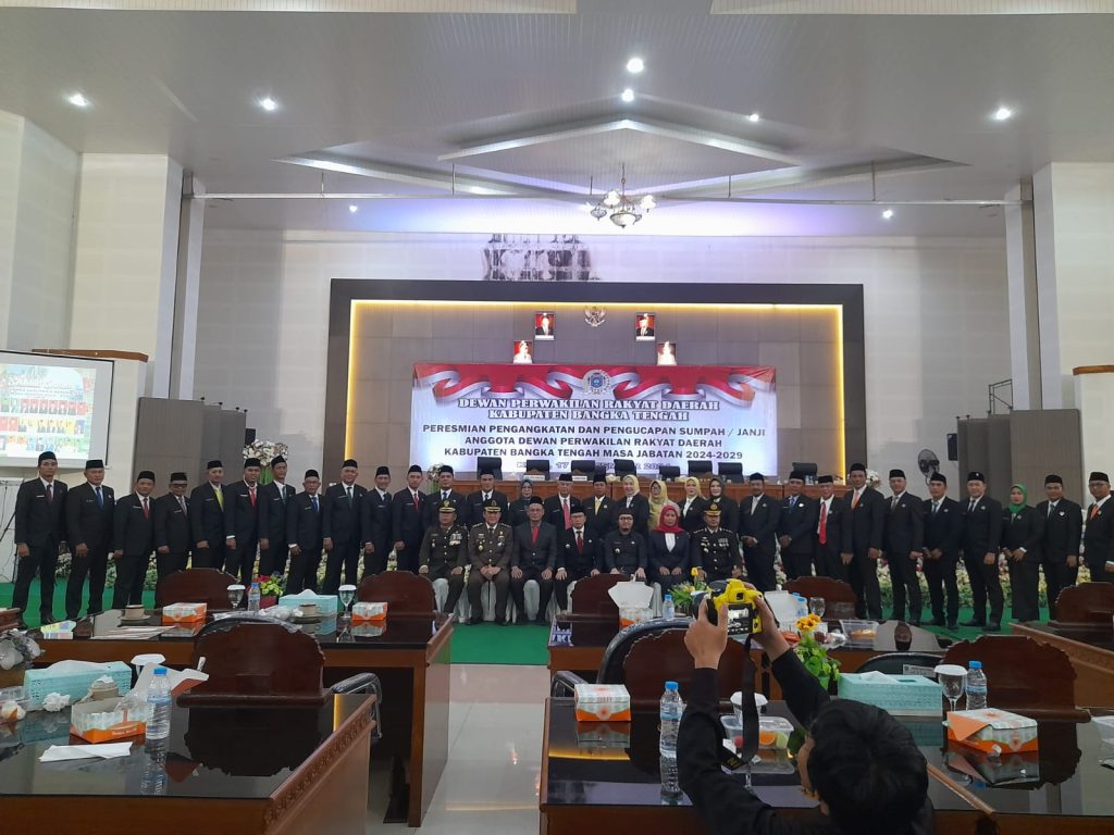 KOBA – Sebanyak 30 anggota Dewan Perwakilan Rakyat Daerah (DPRD) Kabupaten Bangka Tengah (Bateng) masa jabatan 2024-2029 resmi diangkat dan