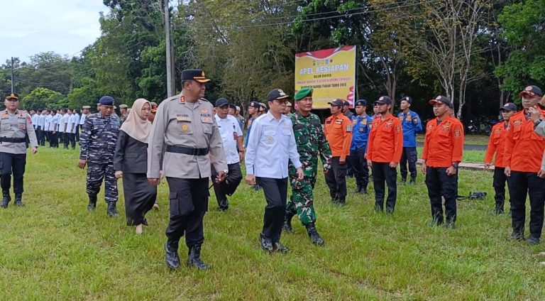 Bupati Algafry Saat Melihat Kesiapan Personil Gabungan Penanggulangan Bencana di Halaman Kantor Bupati Bangka Tengah. Foto : Rachmat Kurniawan.