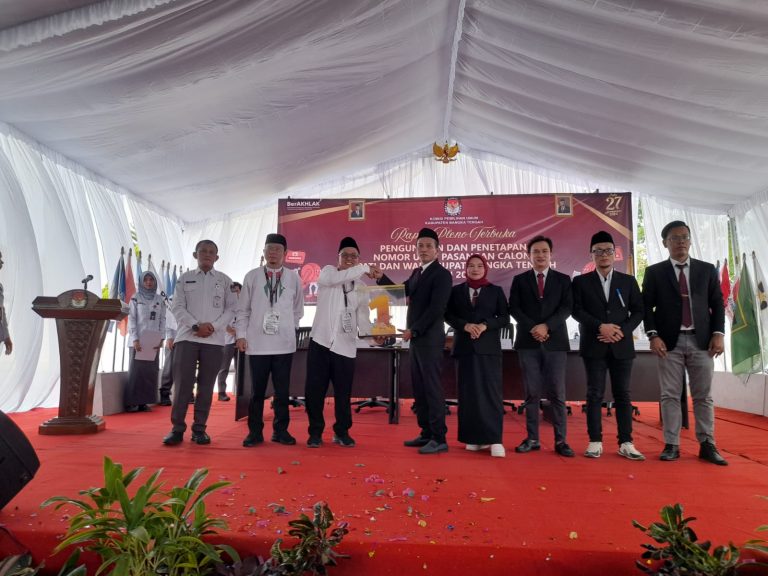 KOBA – KPU Bangka Tengah (Bateng) mengadakan pleno terbuka pengundian dan penetapan nomor urut pasangan calon Bupati dan Wakil Bupati Bangka Tengah Tahun 2024 di Kantor KPU Bangka Tengah, pada Senin (23/9/2024).