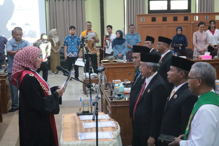Pengukuhan tiga Pimpinan DPRD Kabupaten Bangka Tengah masa jabatan 2024-2029 yakni Batianus, SE., MM sebagai Ketua DPRD didampingi Wakil Ketua 1 H. Korari Suwondo, SH serta Wakil Ketua II Jumri.